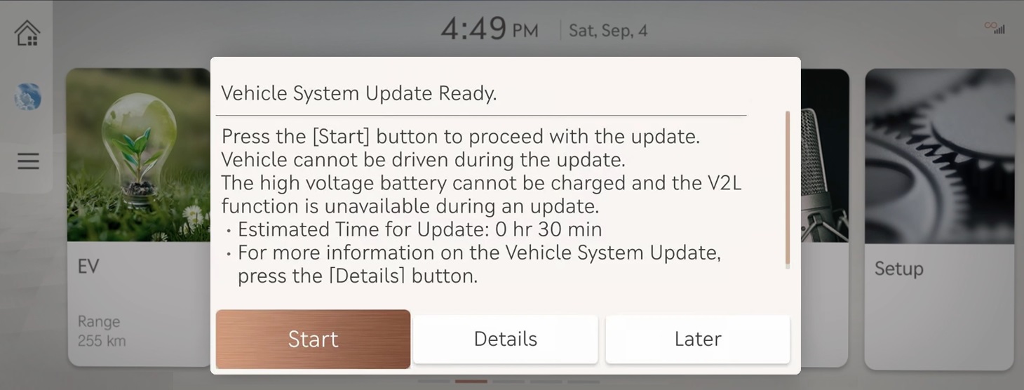 - Brug [Søg efter tilgængelige softwareopdateringer] på startskærmen for at finde den nyeste software til dit køretøj.
