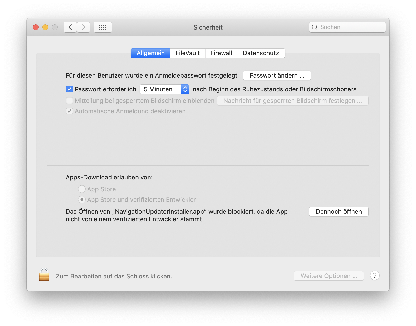 Klicken Sie unter [Sicherheit und Datenschutz] > [Allgemein] > [Apps von folgenden Quellen zulassen] auf die Schaltfläche „Trotzdem öffnen“.