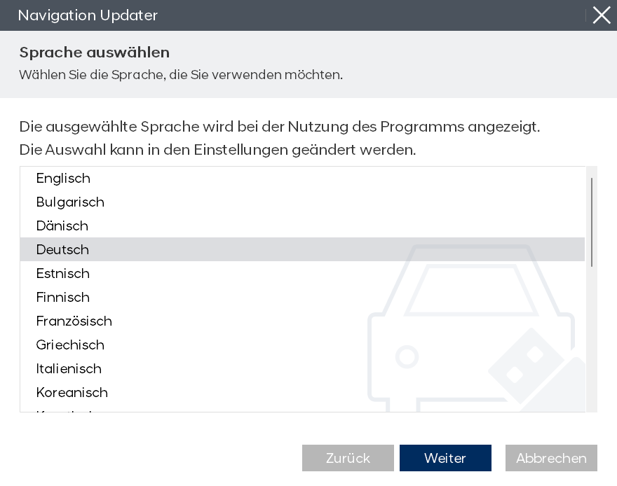 Wählen Sie die Sprache aus, die Sie im Programm verwenden möchten, und klicken Sie dann auf die Schaltfläche „Weiter“.