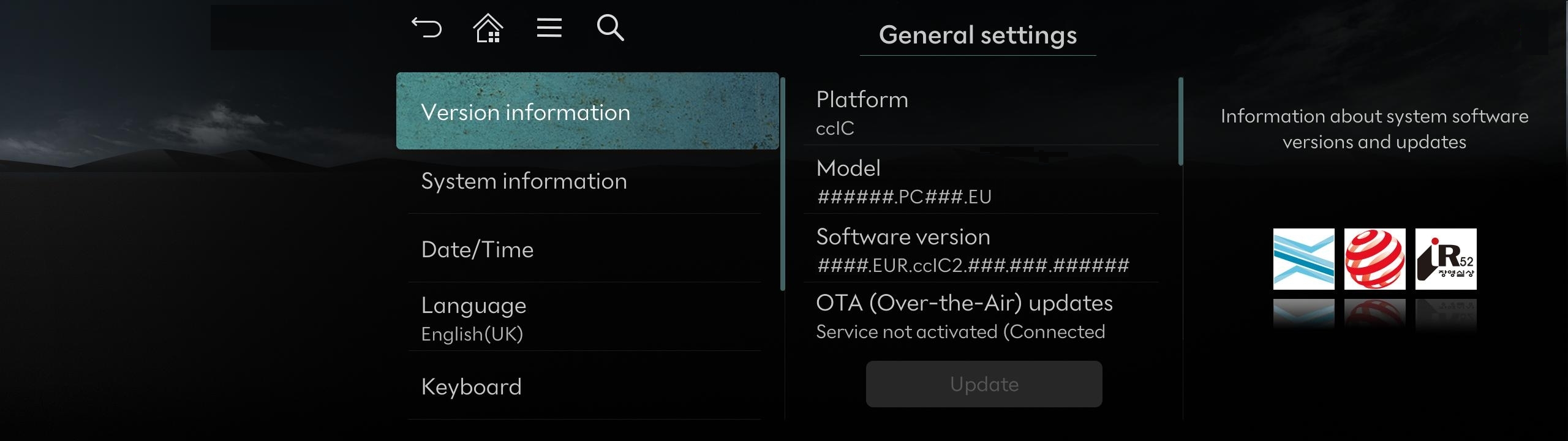 Wählen Sie „Version information“ auf dem General Settings-Bildschirm und dann die Schaltfläche „Update“ aus, um mit der Aktualisierung fortzufahren