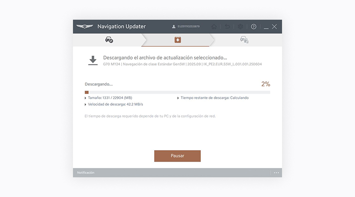 1. La actualización solo se puede realizar con el sistema de navegación encendido.