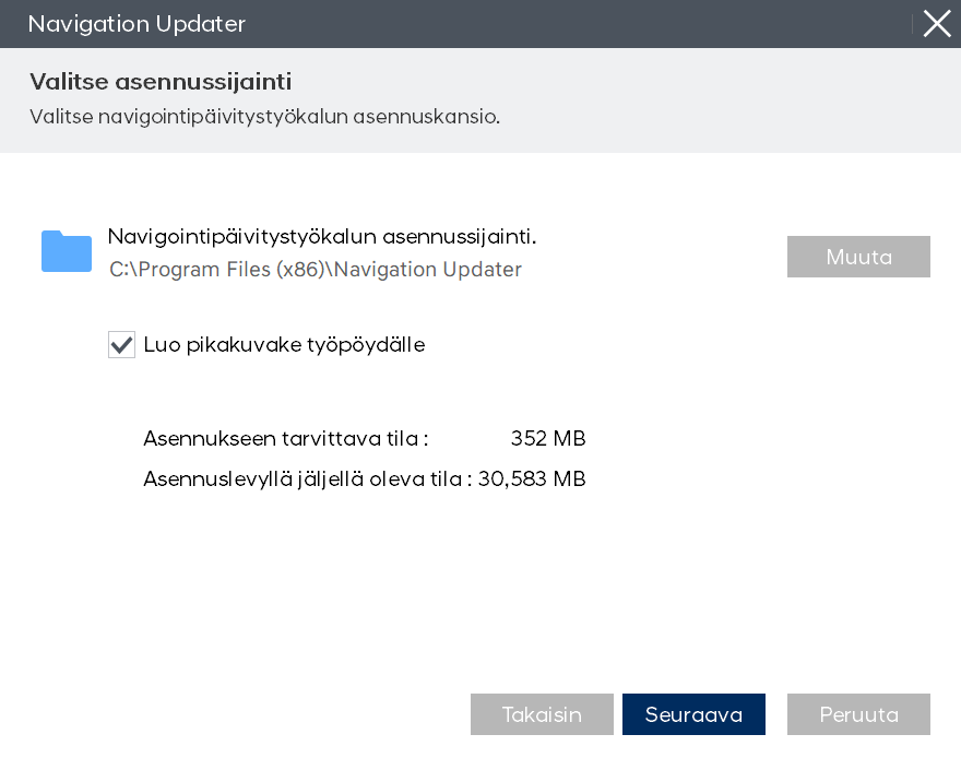 Valitse paikka, johon ohjelma asennetaan, ja napsauta sitten ”Seuraava” -painiketta jatkaaksesi asennusta.