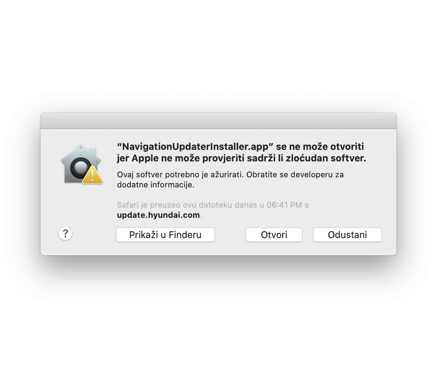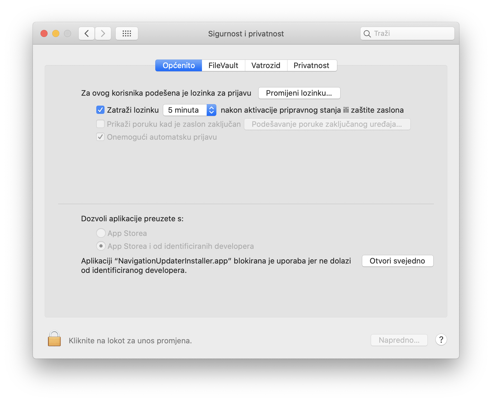U [Sigurnost i privatnost] > [Općenito] > [Dopusti aplikacije preuzete iz] kliknite gumb „Otvori svejedno”.