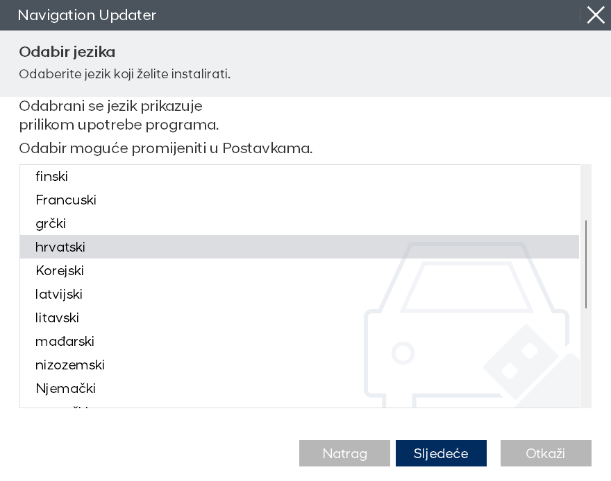 Odaberite jezik koji želite koristiti u programu, a zatim kliknite gumb „Dalje”.