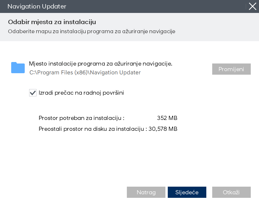 Pokrenite Navigation Updater.