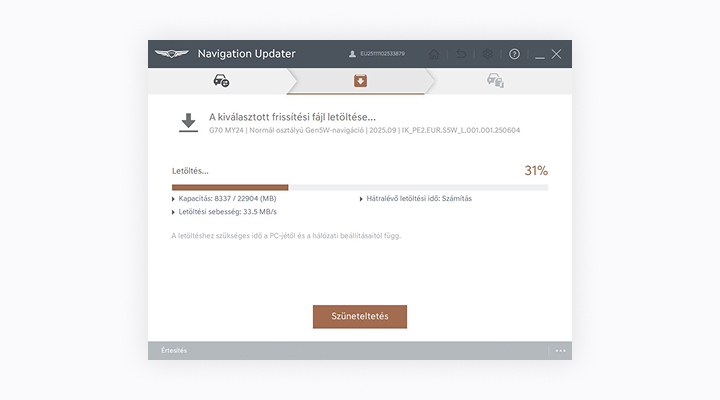 1. A frissítés csak akkor végezhető el, ha a navigációs rendszer be van kapcsolva.