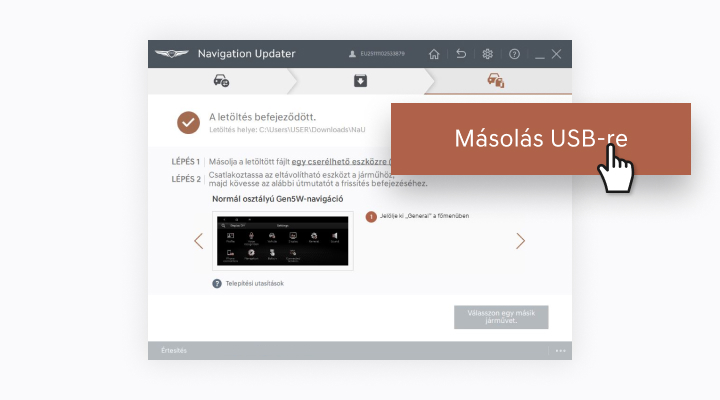 - ※ Ha a PC eltávolítható lemez helyett helyi lemezként ismeri fel, a Navigation Updateren keresztüli fájlmásolás nem biztos, hogy folytatható.