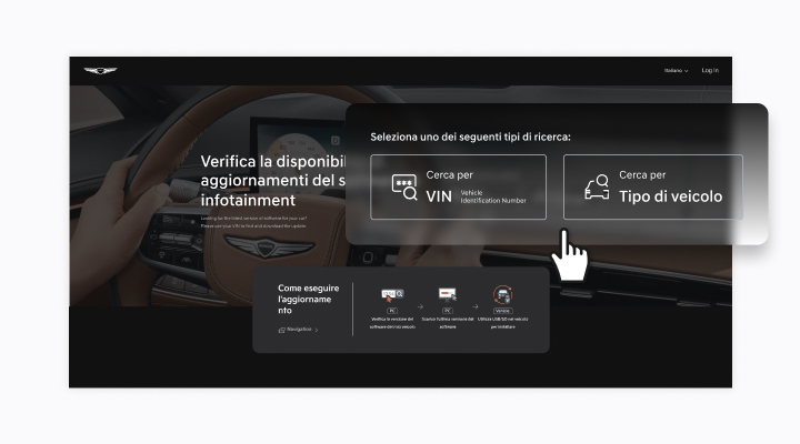 Porta il dispositivo portatile (USB) sul tuo veicolo e procedi con il processo di aggiornamento.Le istruzioni sono fornite di seguito.