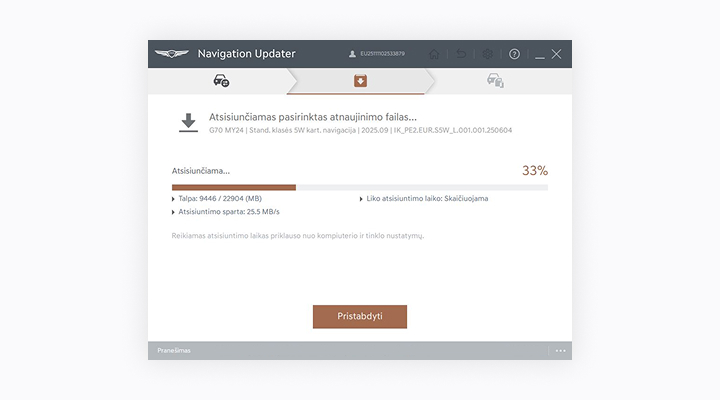 1. Atnaujinti galima tik kai navigacijos sistema yra įjungta.