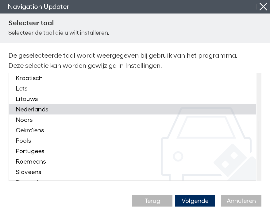 Selecteer de taal die u in het programma wilt gebruiken en klik vervolgens op de knop 'Volgende'.