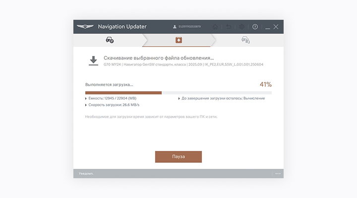 1. Обновление можно выполнить только при включённой навигационной системе.