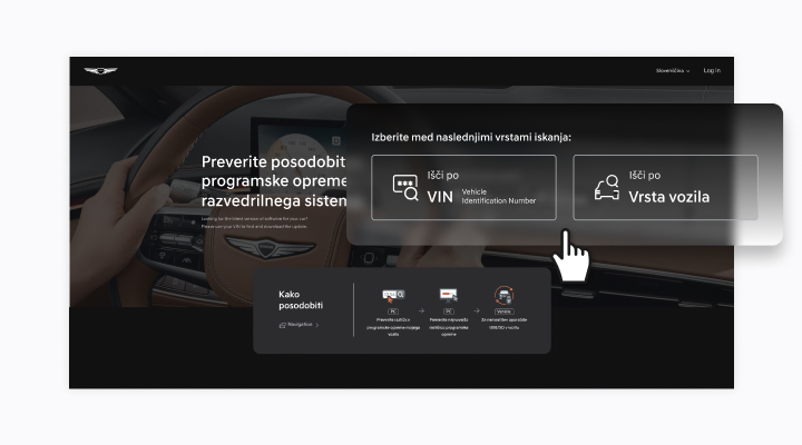 "Nesite prenosno napravo (ključ USB) v svoje vozilo in nadaljujte s postopkom posodobitve.Navodila so predložena spodaj."