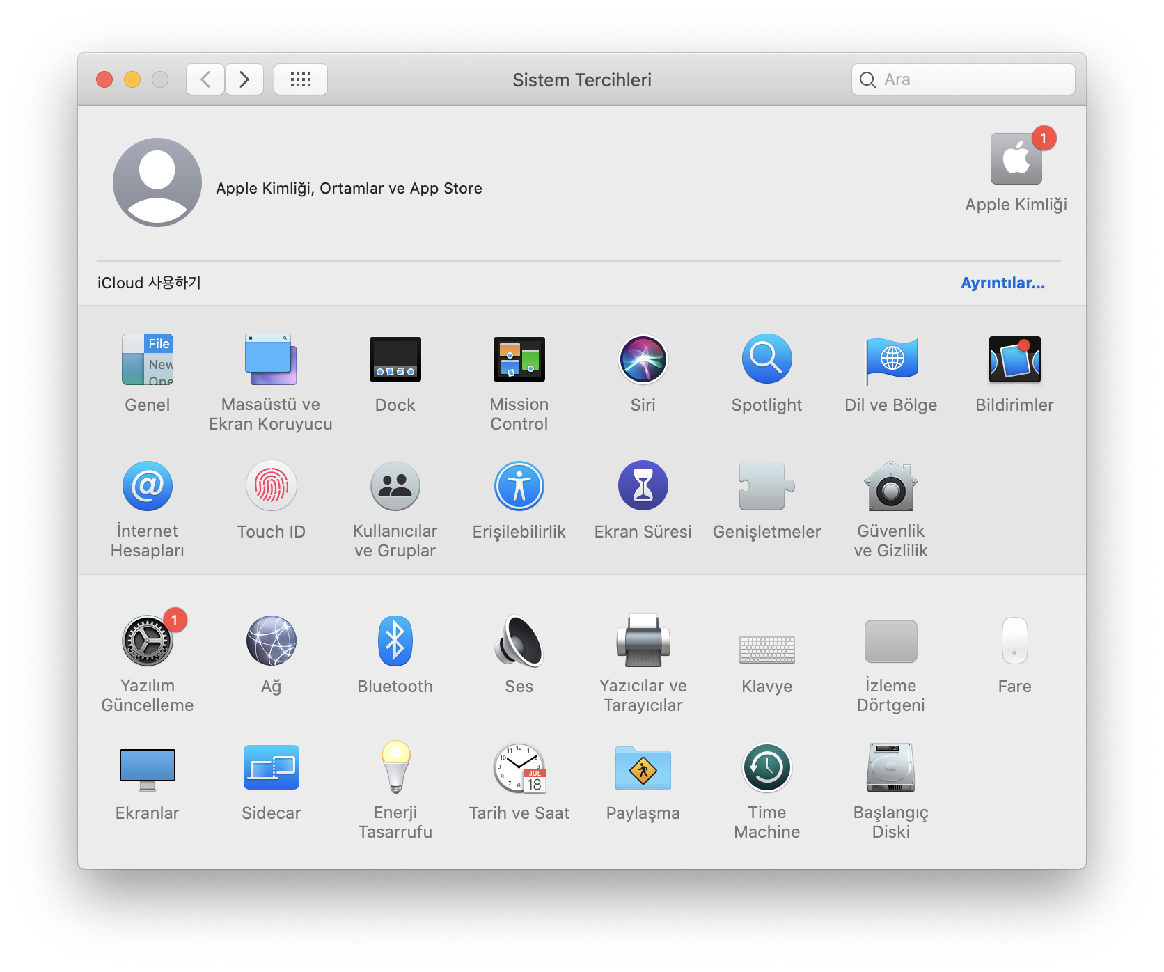 Sistem Tercihleri > [Güvenlik ve Gizlilik] bölümüne gidin ve tıklayın.