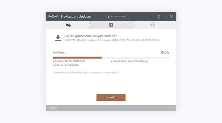 - Dikkat: Aracın akü gücünü kullanıyorsanız, güncellemeye devam etmeden önce akünün yeterli şarja sahip olduğundan emin olun.