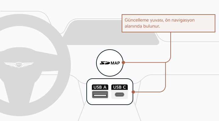 "Lütfen taşınabilir aygıtı (USB) aracınıza götürün ve güncelleme işlemine devam edin.Talimatlar aşağıda verilmiştir."