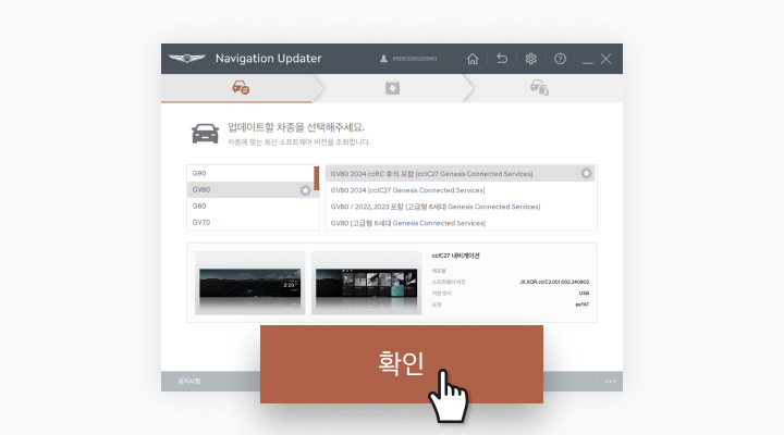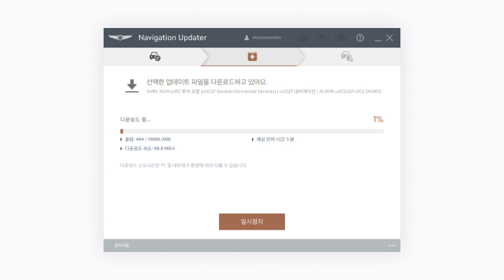 - 시동 버튼 ON 상태에서 업데이트 중 시동을 걸 경우에도 내비게이션 전원이 차단될 수 있습니다.