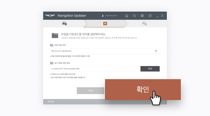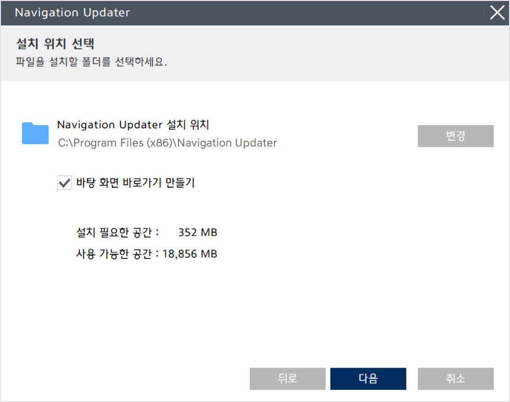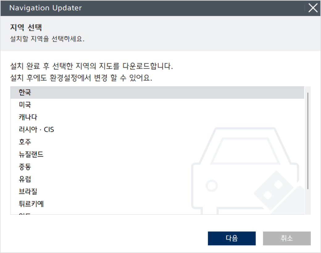 [다운로드] 버튼을 클릭하면 설치한 Navigation Updater가 실행됩니다.