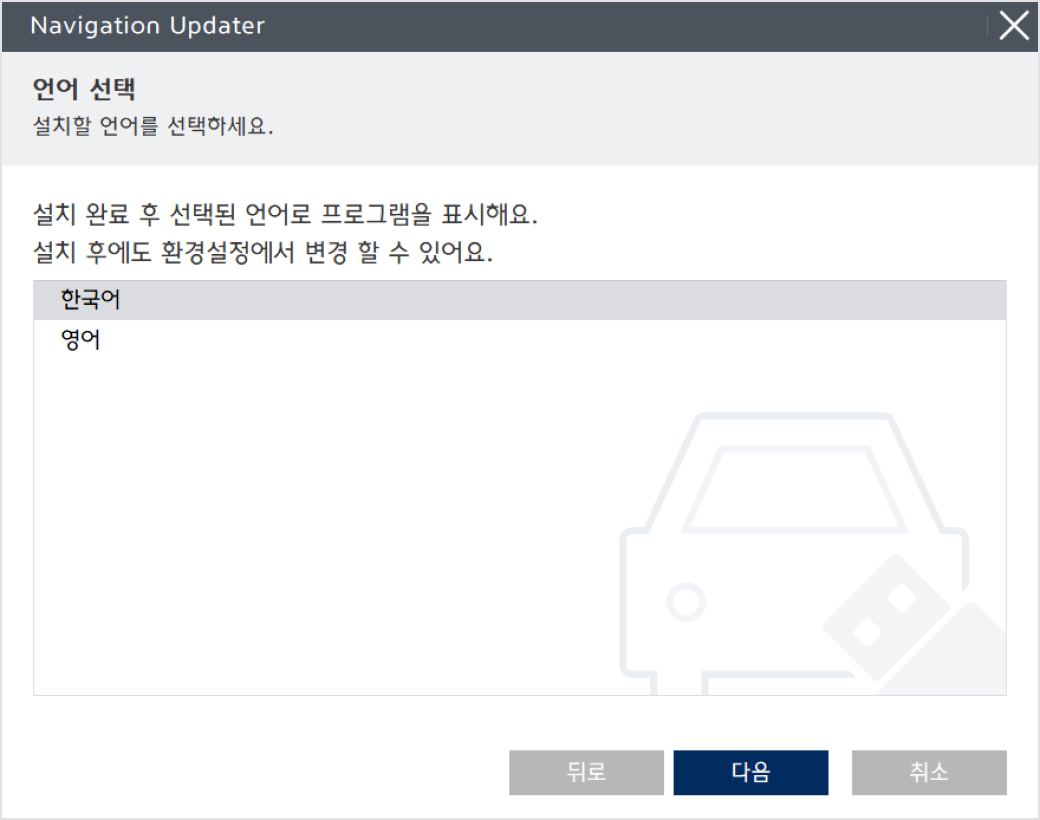 프로그램에서 사용하실 언어를 선택하신 후 "다음" 버튼을 클릭해주십시오.