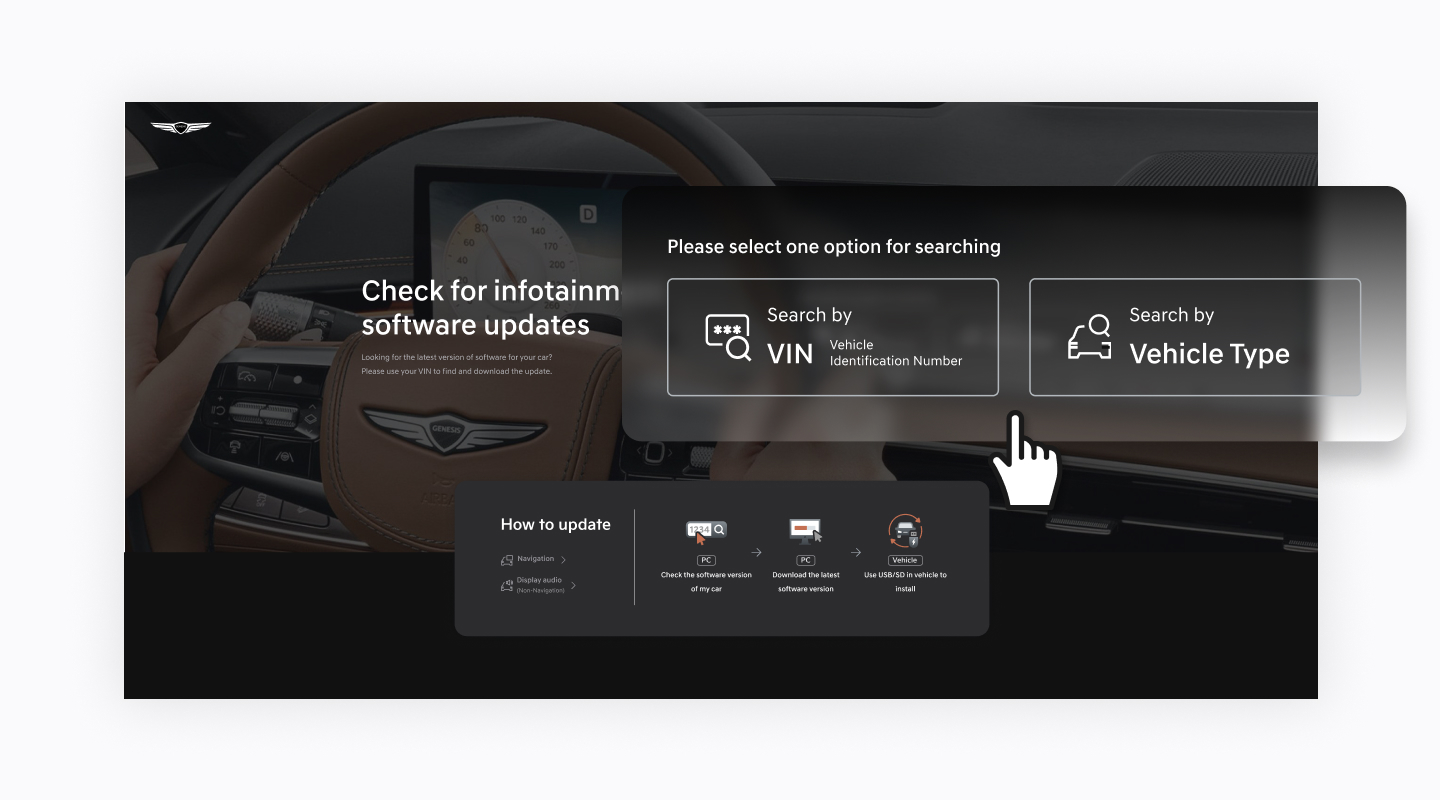 Please take the portable device(USB) to your vehicle and proceed with the updating process. Instructions are provided below.