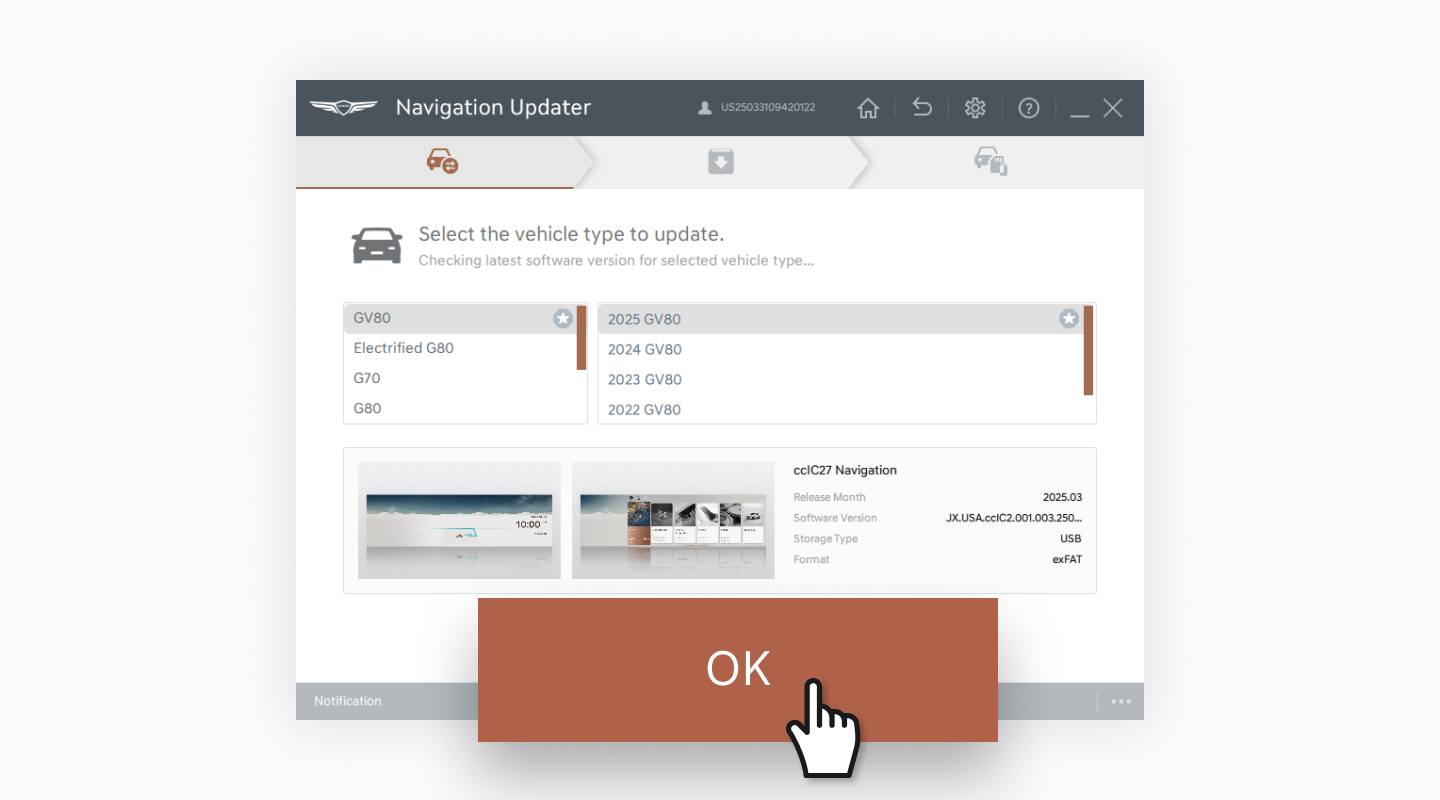 - Confirm the selected vehicle and software, then select the [Confirm] button.