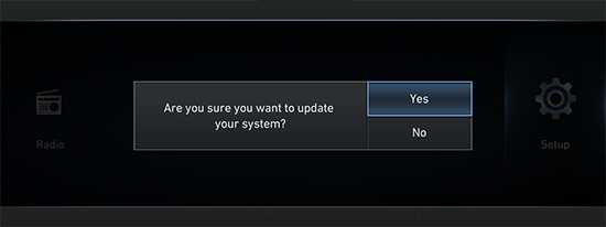 A pop up automatically appears when you insert the USB. The Update will start when you click the "Yes" button